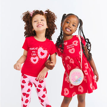 Treat your little sweetheart to this scrumptious red t-shirt dress, smothered in adorable heart-shaped donuts!...