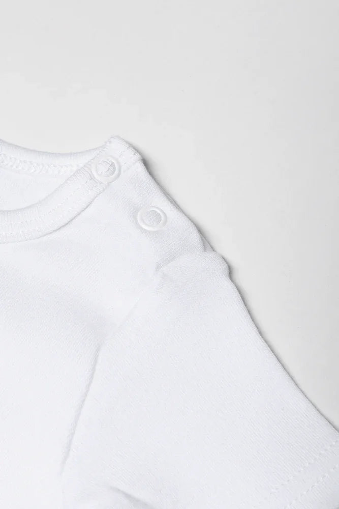Soft and gentle, these four white baby bodysuits are perfect for your little one's everyday...