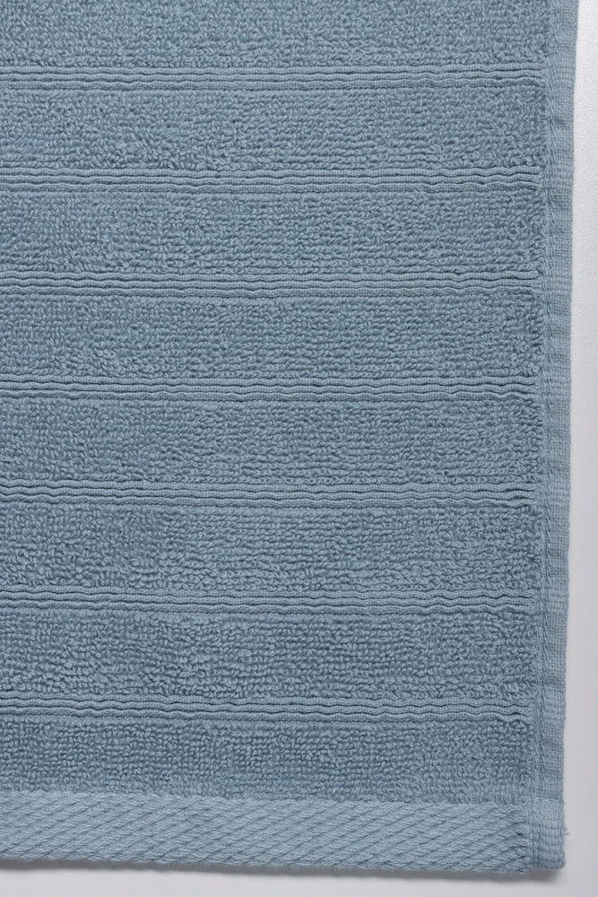 Luxurious bath towel in a soft smoke blue color, crafted from plush 450 GSM cotton...