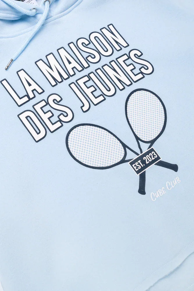 Serve up style and comfort with this bright blue crop hoodie, perfect for young tennis...