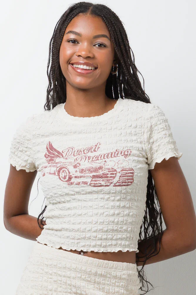 Dream big with this awesome textured t-shirt! The stone-coloured tee features a rad red graphic...