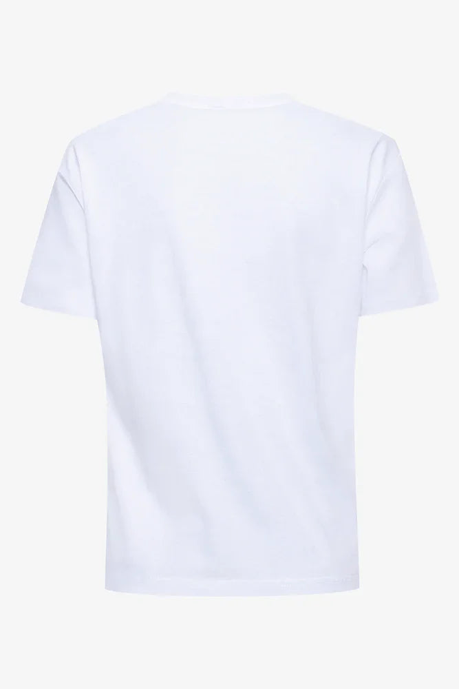 Another stylish white tee with a unique placement print, offering a trendy and versatile addition...
