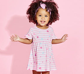Get ready to shine in this stylish pink and white striped t-shirt dress. The relaxed...